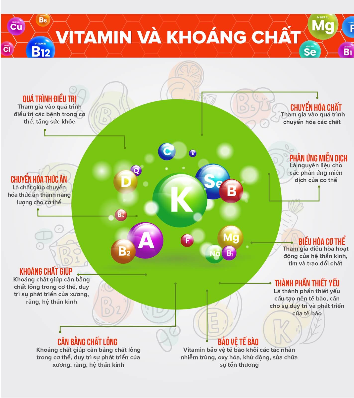 Vitamin và khoáng chất là những nhiên liệu rất quan trọng trong cơ thể tham gia vào các quá trình như: